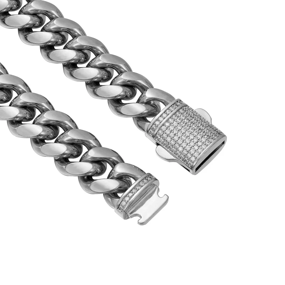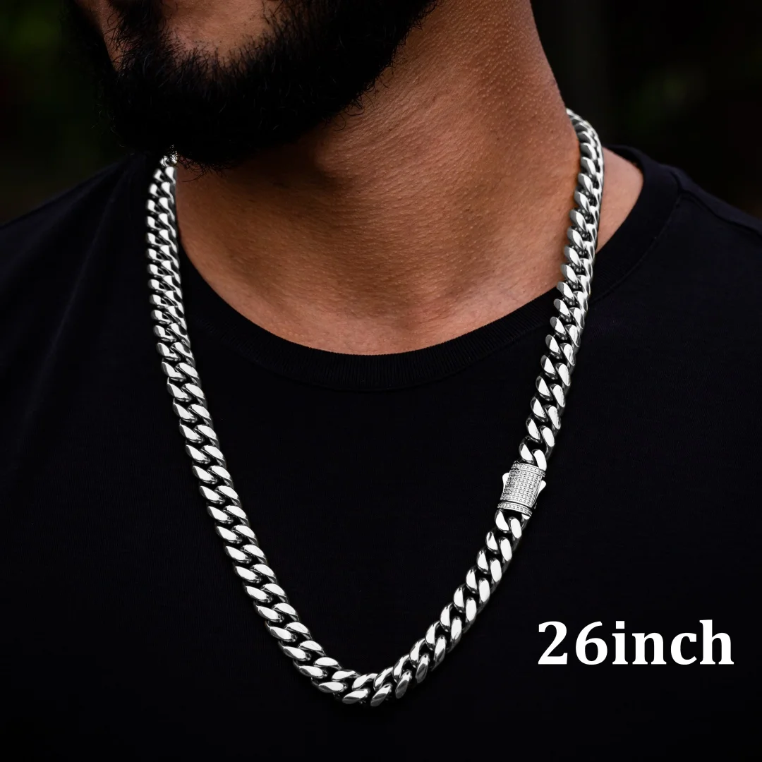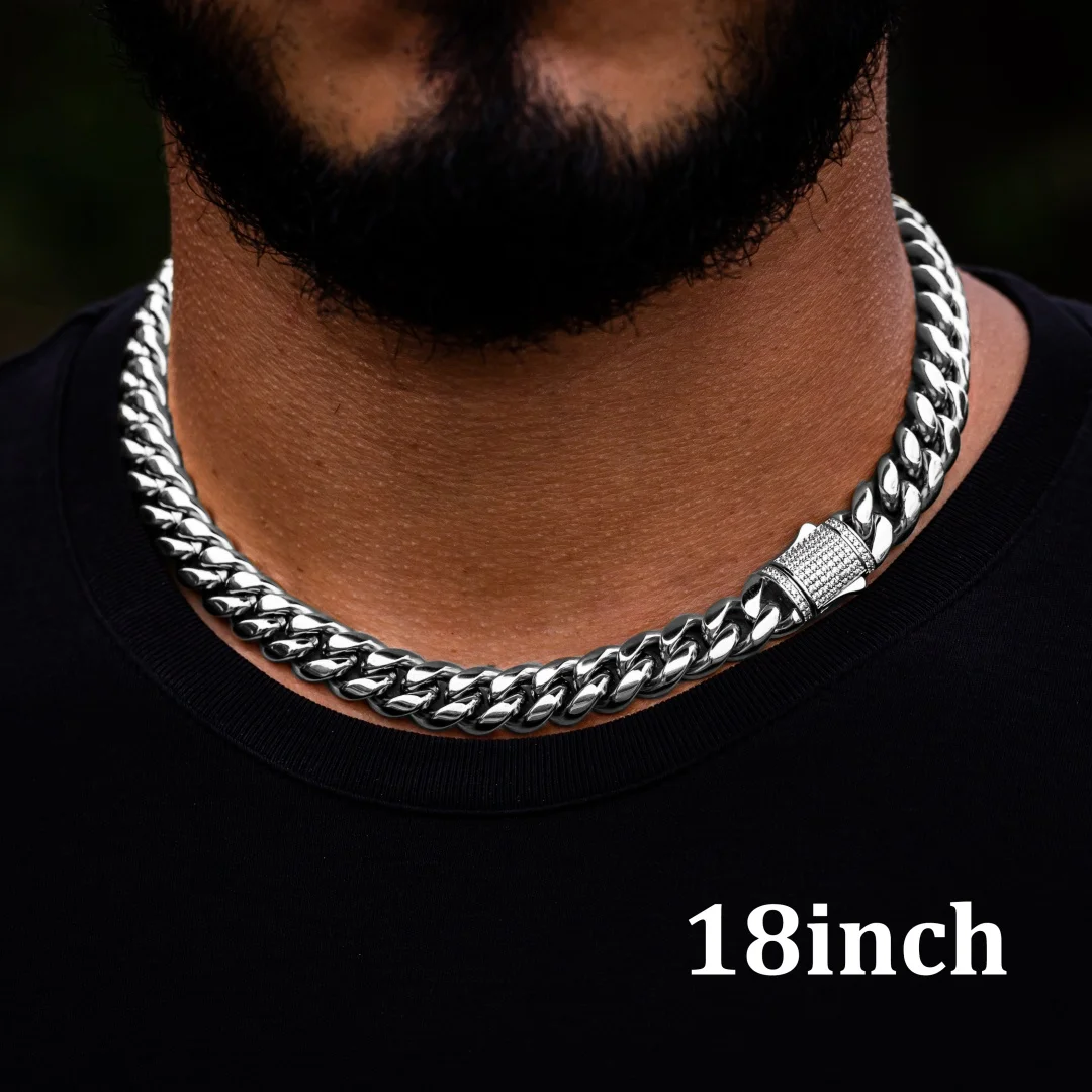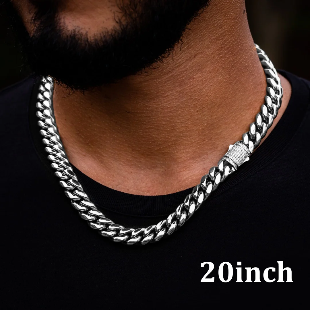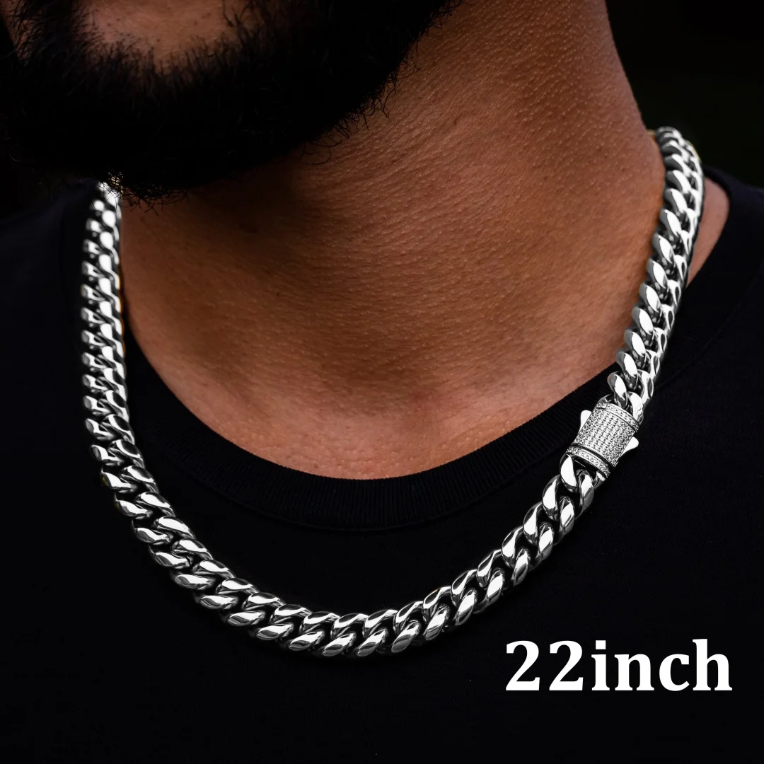 6-14mm Stainless Steel Round Cuban Miami Chains Necklaces CZ Zircon Box Lock Heavy Link Chain for Men Hip Hop Rapper jewelry