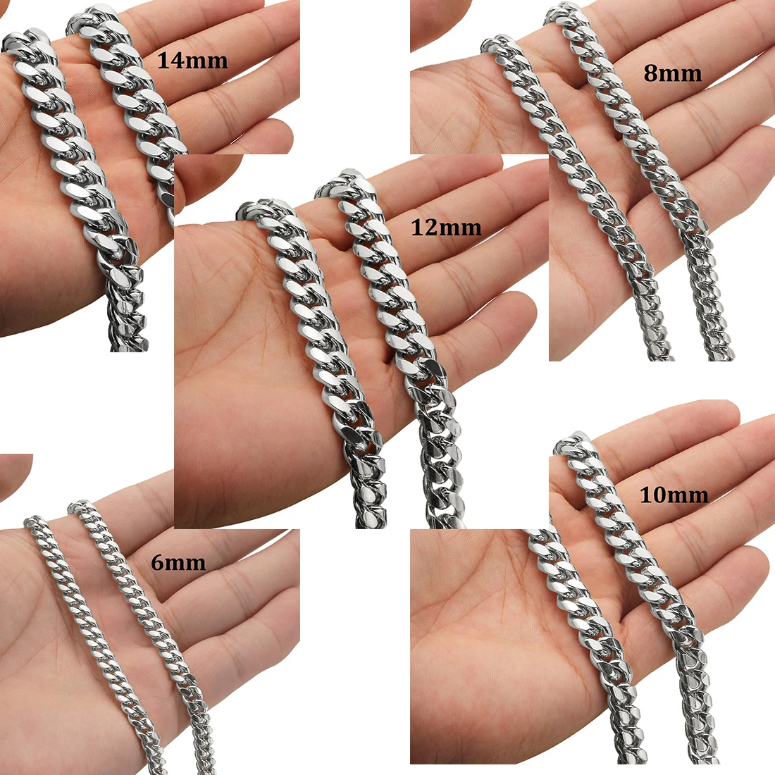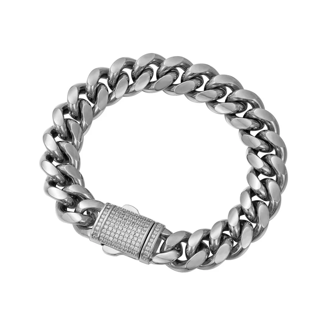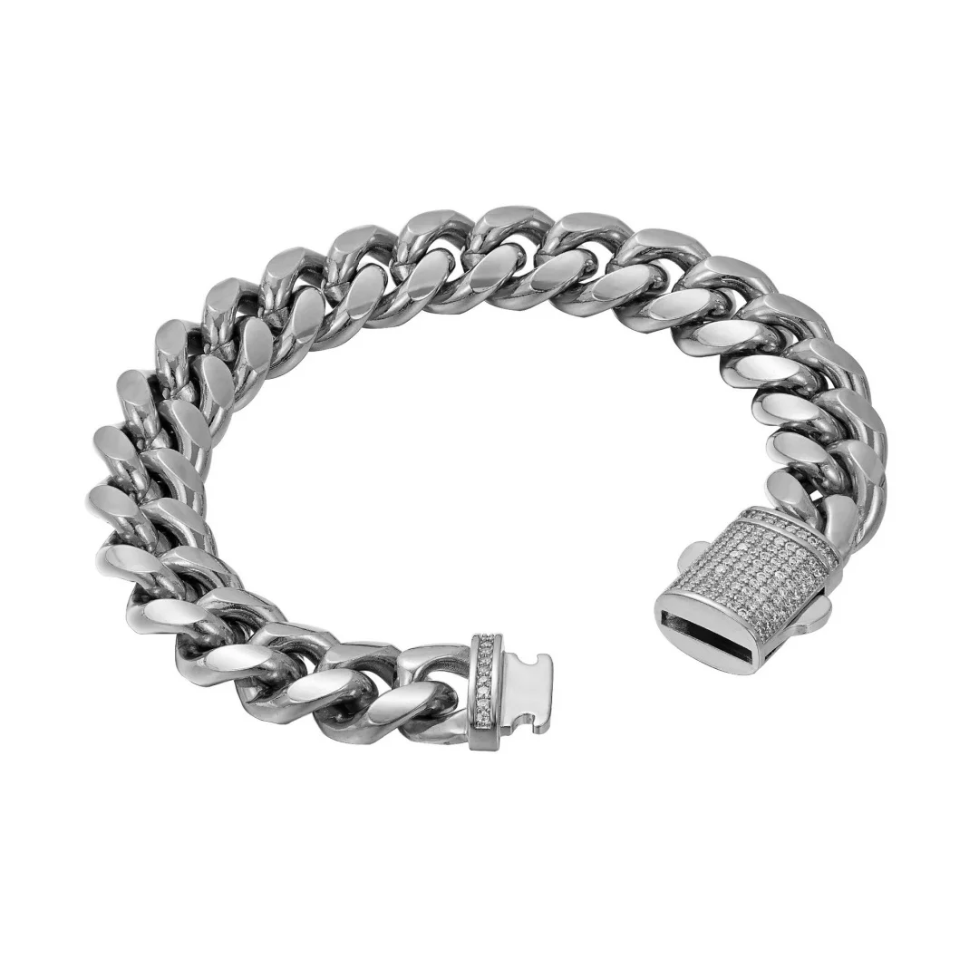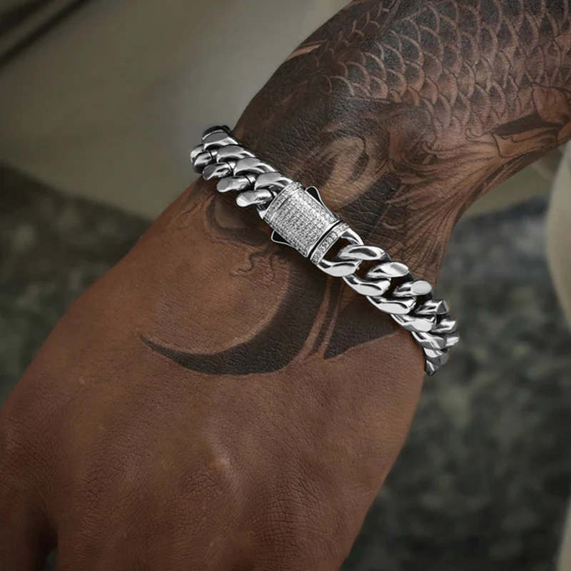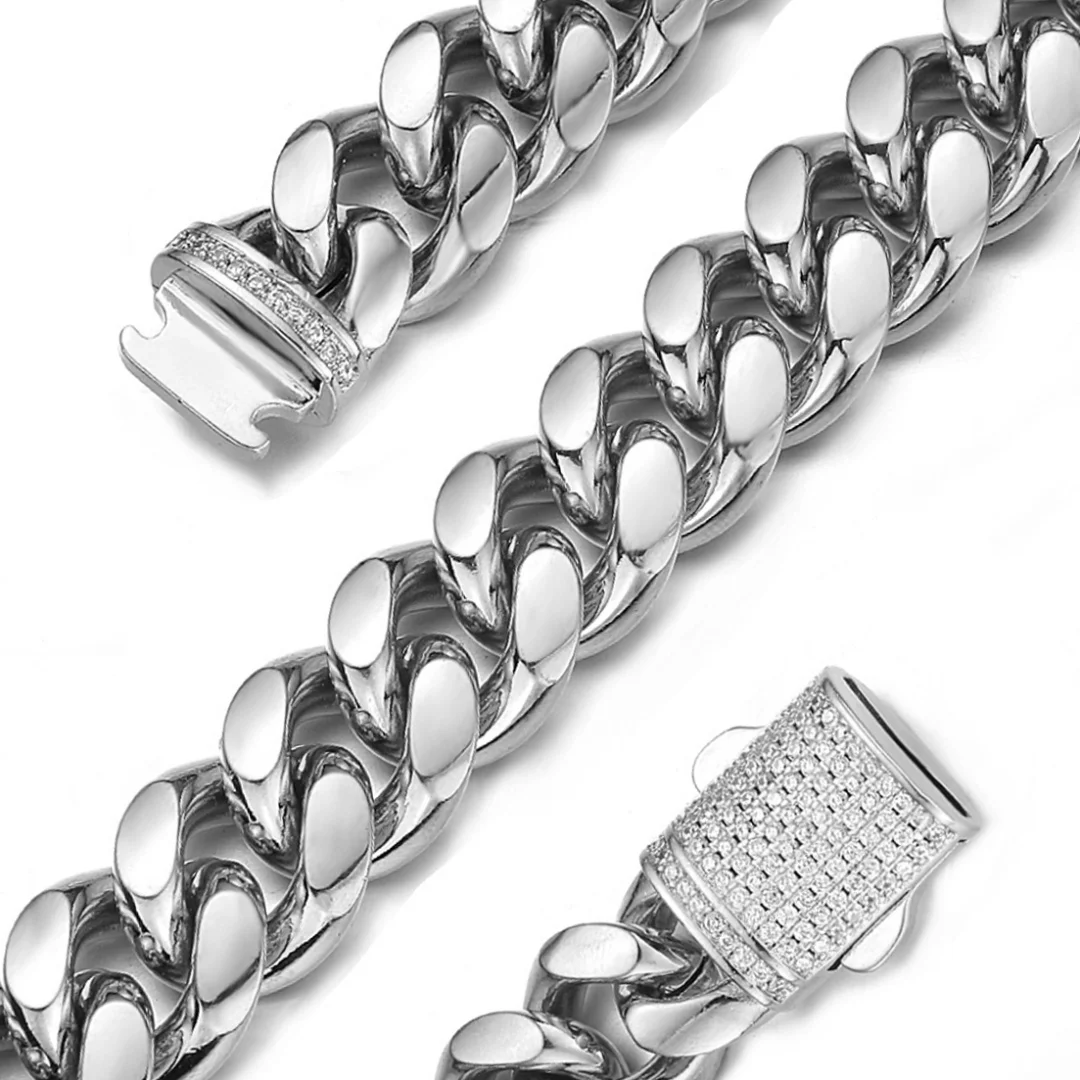 6-14mm Stainless Steel Round Cuban Miami Chains Necklaces CZ Zircon Box Lock Heavy Link Chain for Men Hip Hop Rapper jewelry