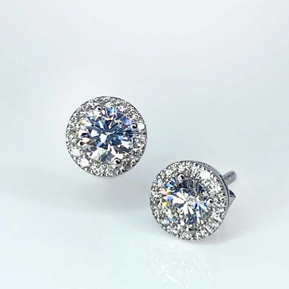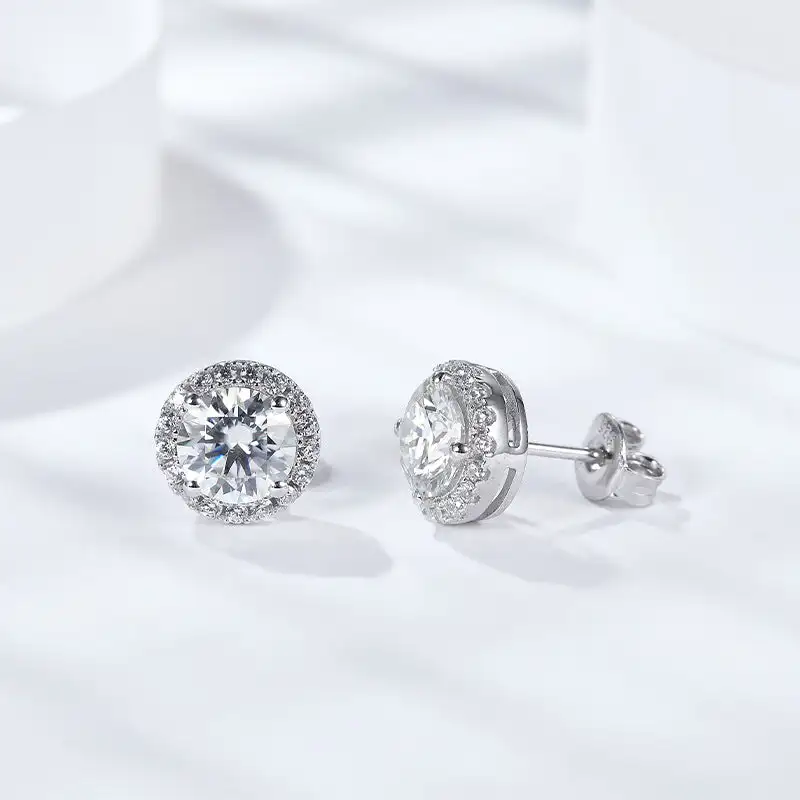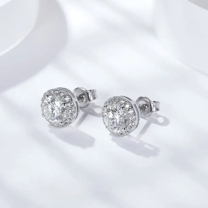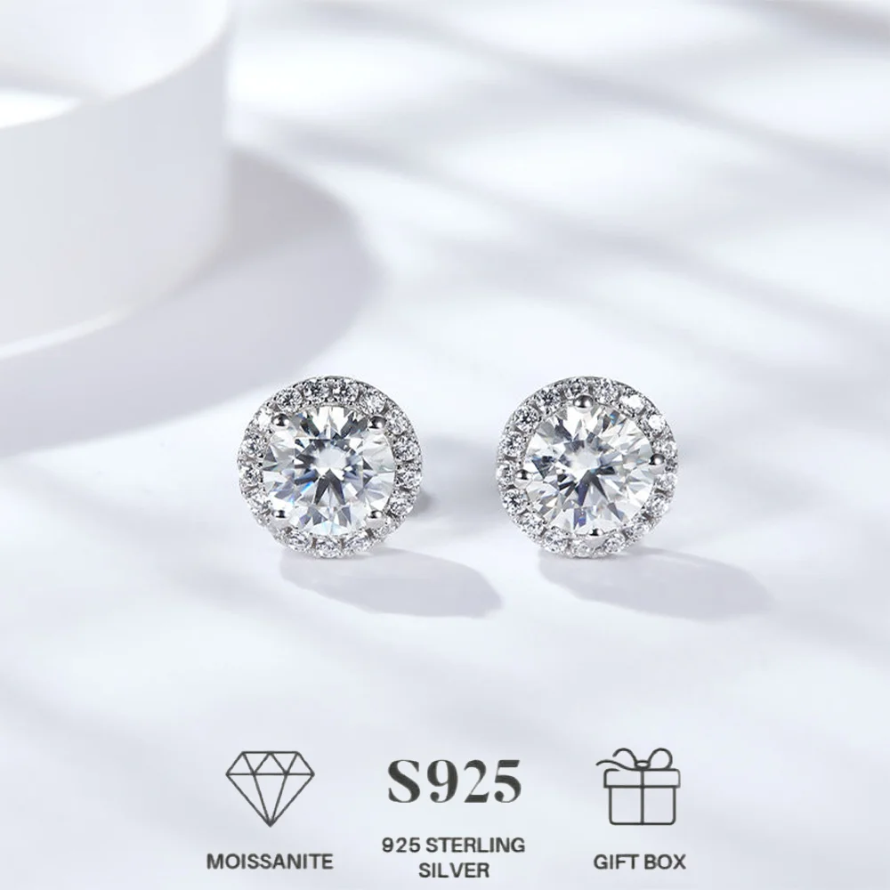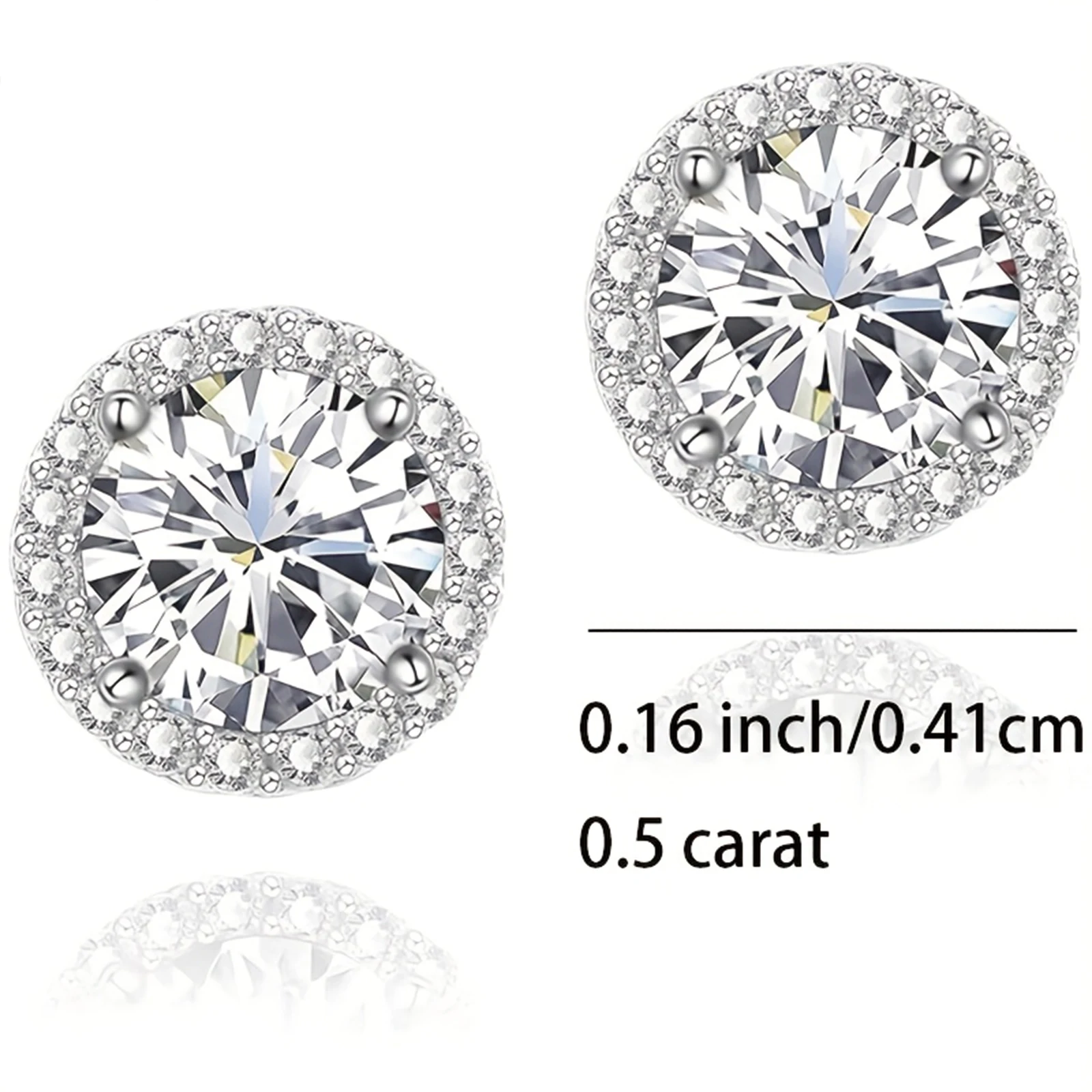 925 sterling silver Stud Earrings For Women | Sterling Silver Stud Earrings with Round Cut Crystals, Mozambique diamond Earring