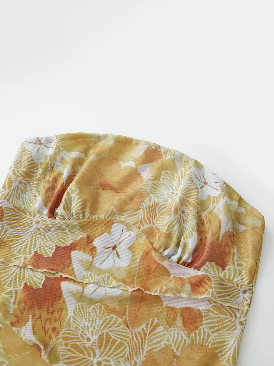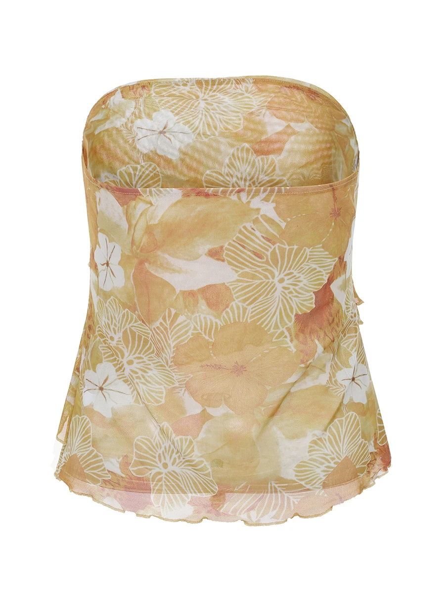 Women Tube Tops Floral Print Strapless Tops Summer Fashion Backless Bandeau Shirts Streetwear