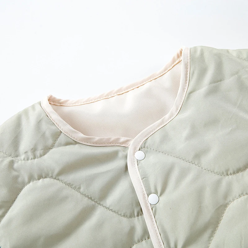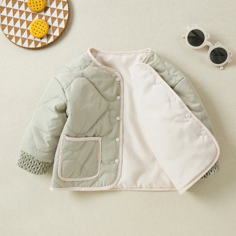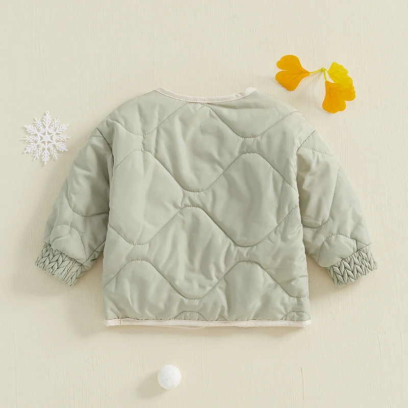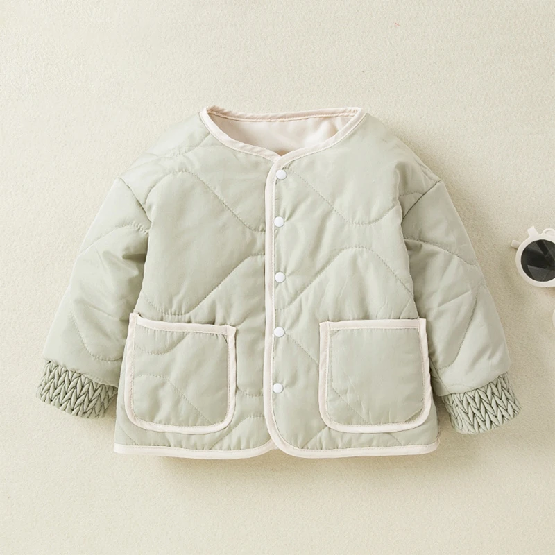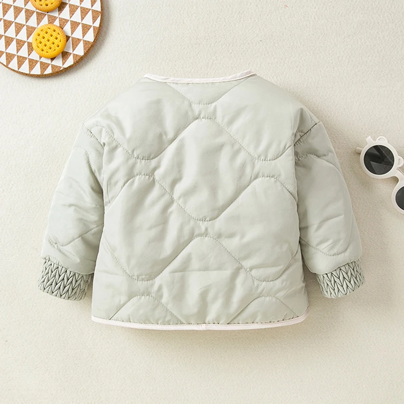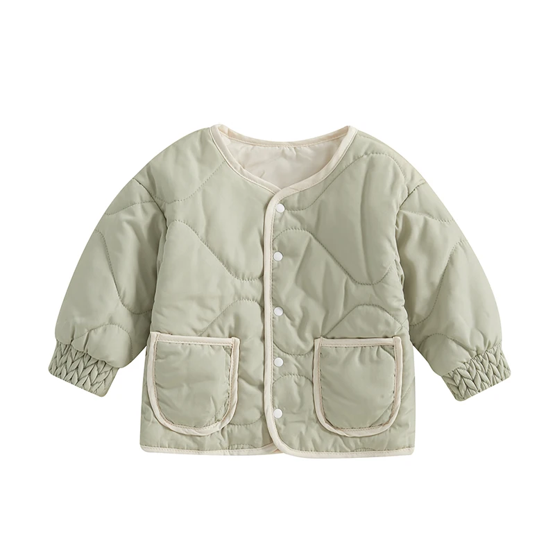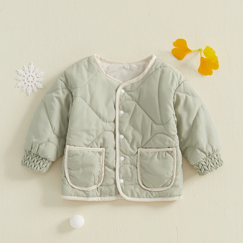 Toddler Quilted Jacket Round Neck Long Sleeve Snap-on Button Winter Coat with Pockets Casual Outerwear for Boys GirlsSize (cm)