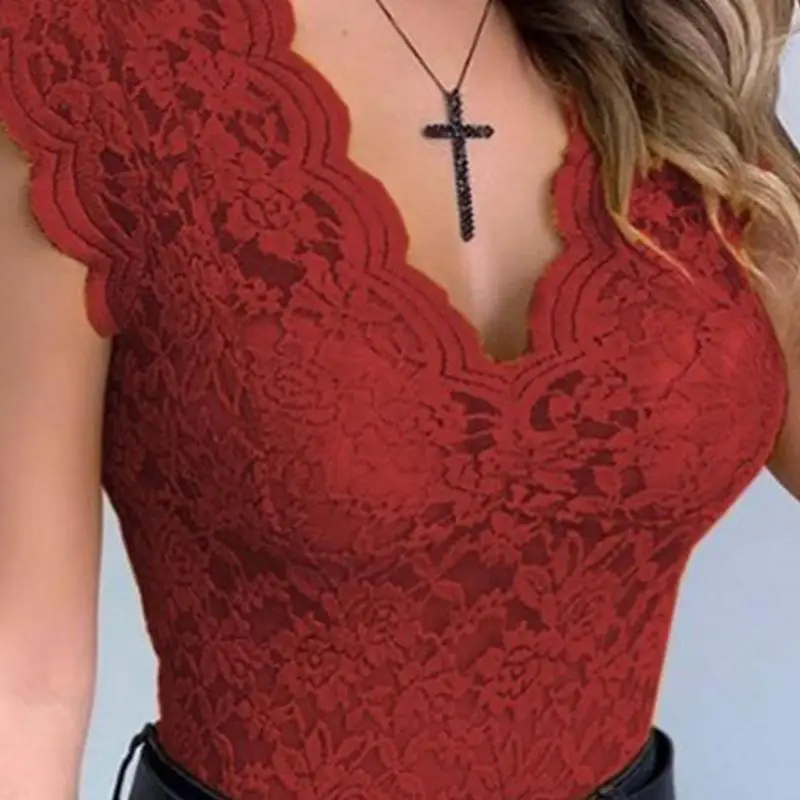 Lace Blouses Shirts Sexy Club Female Acrylic Shirts Deep V Summer Fashon Tops Lace Sexy V Neck Sleeveless Fashon Top