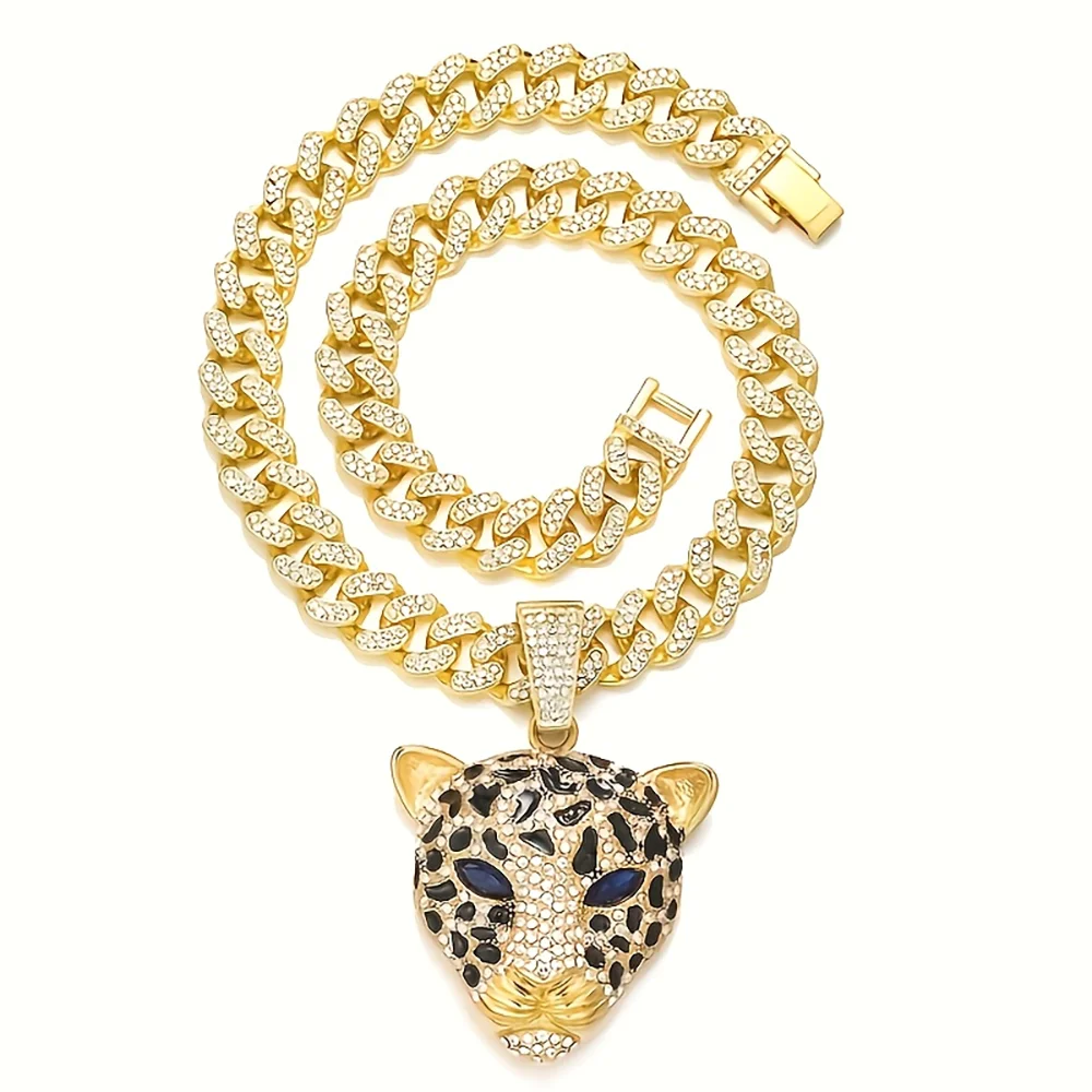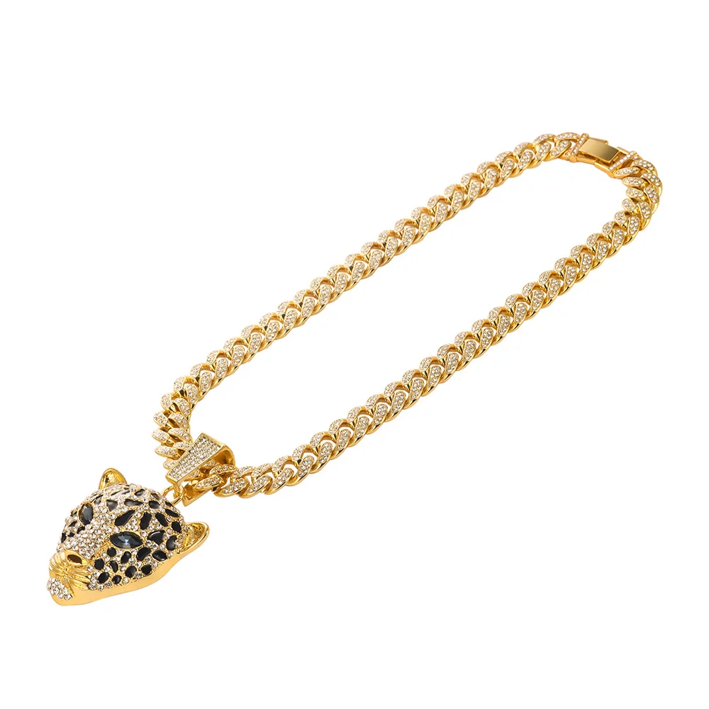 Leopard Necklace Zinc Alloy Diamond Leopard Head Pendant Personalized Luxury Cuban Chain Hip Hop Jewelry for Men and Women USA