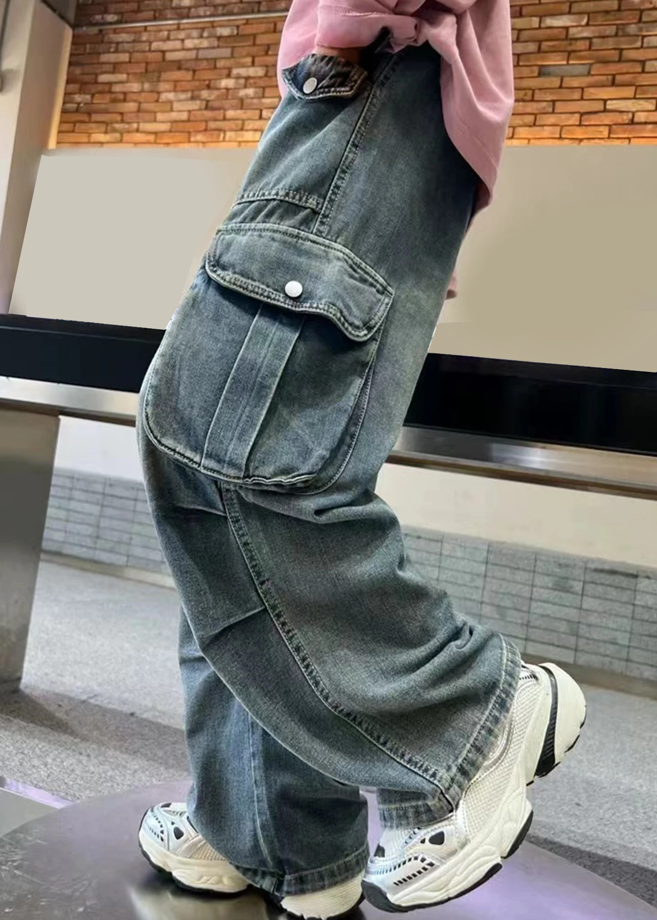 Loose-fit preppy-style casual denim jeans for teenage boys – versatile, stylish, and rugged washed s