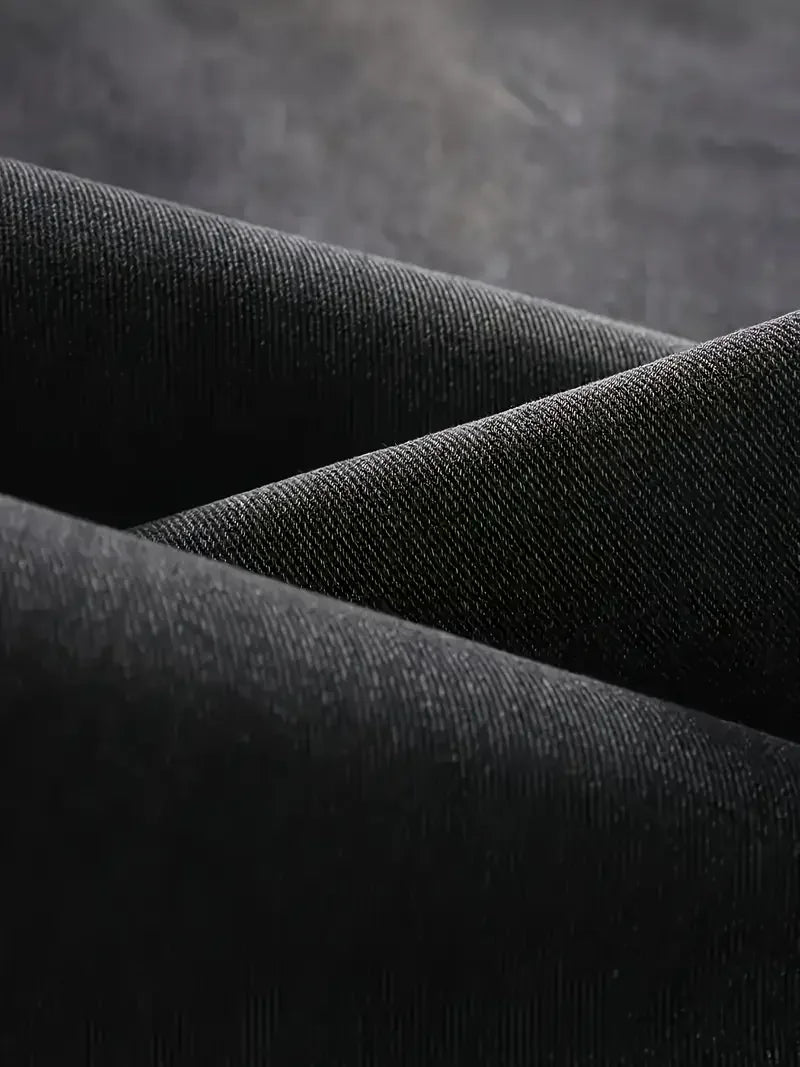 Men's Loose Fit Straight Leg Jeans - 65% Cotton 35% Polyester Blend, Dark Gray Casual Washed Jeans, 390gsm Heavyweight Fabric, A
