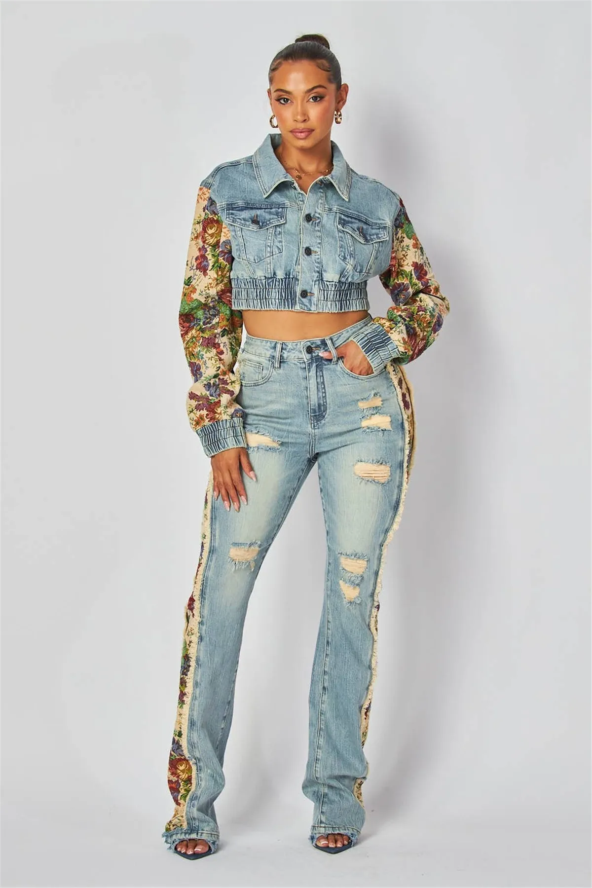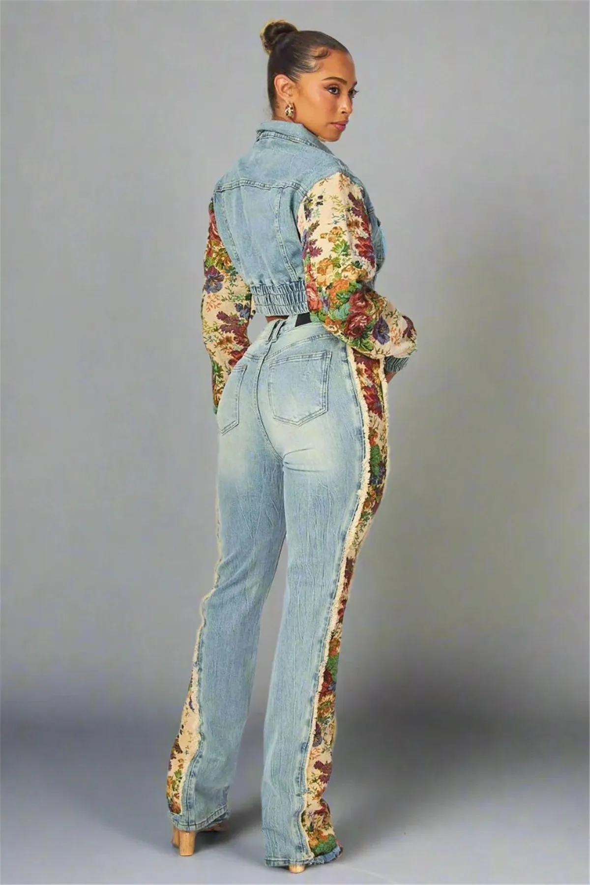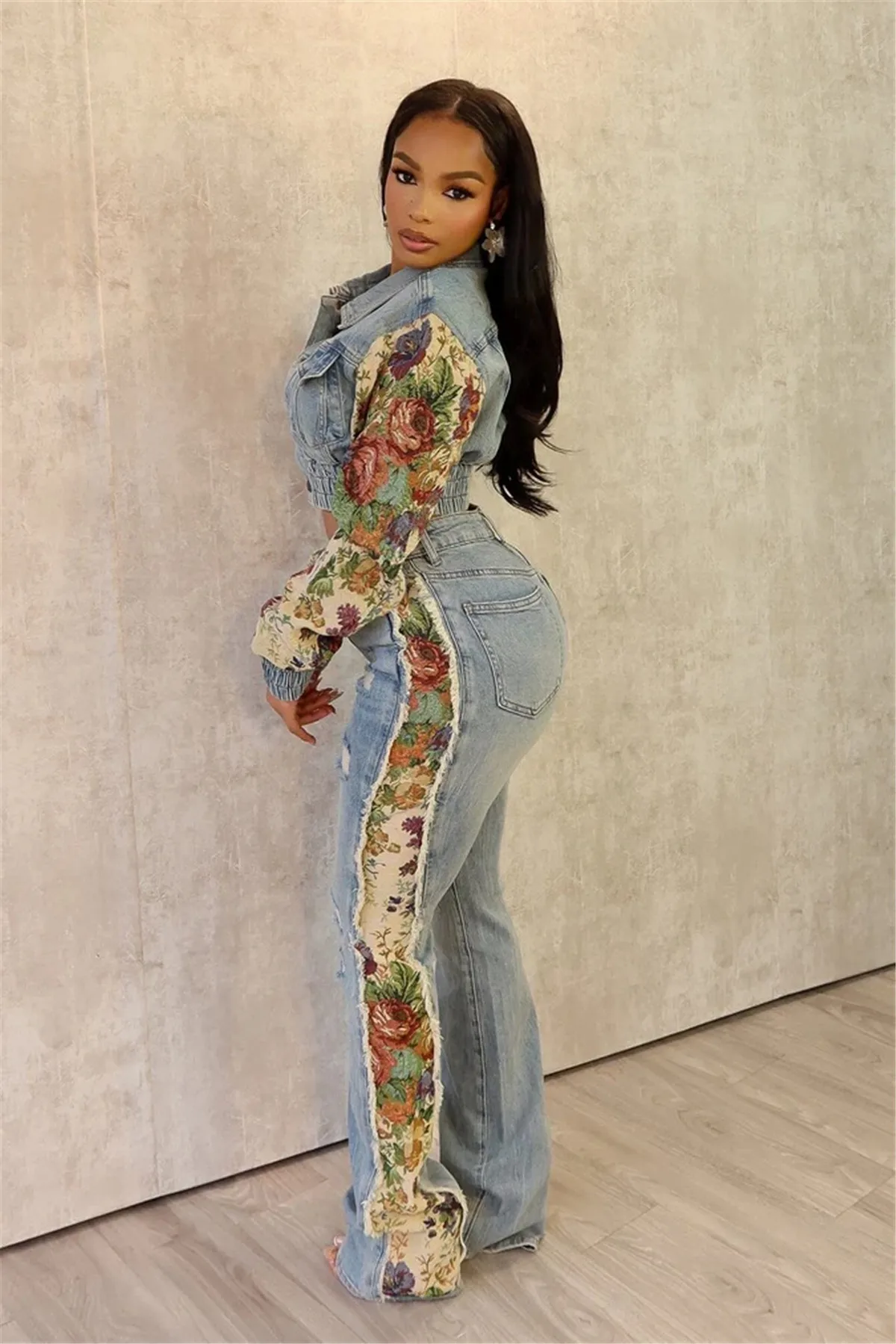 New autumn and winter fashion print color matching denim jeans