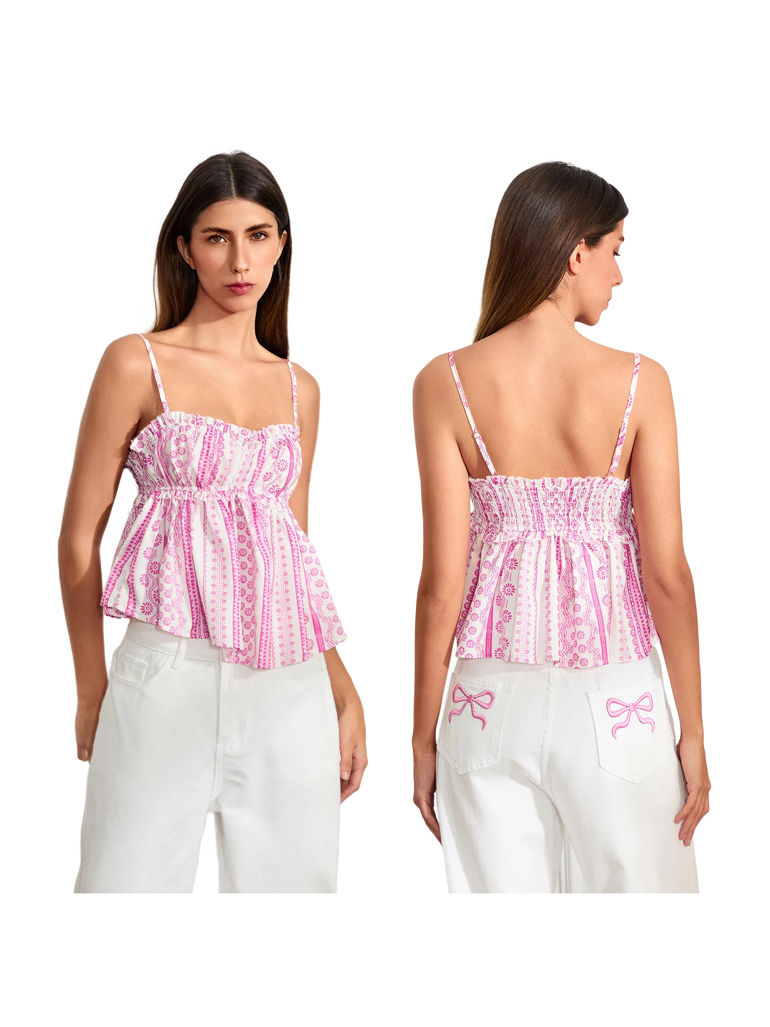 Women Maternity Camisole Floral Print Frill Trim Spaghetti Strap Backless Babydoll Tank Tops Casual Streetwear