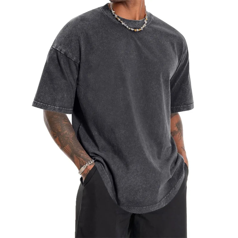Men Women T-shirt, Vintage Short Sleeve T-shirt Crew Neck Washed Summer Tops for Casual Daily