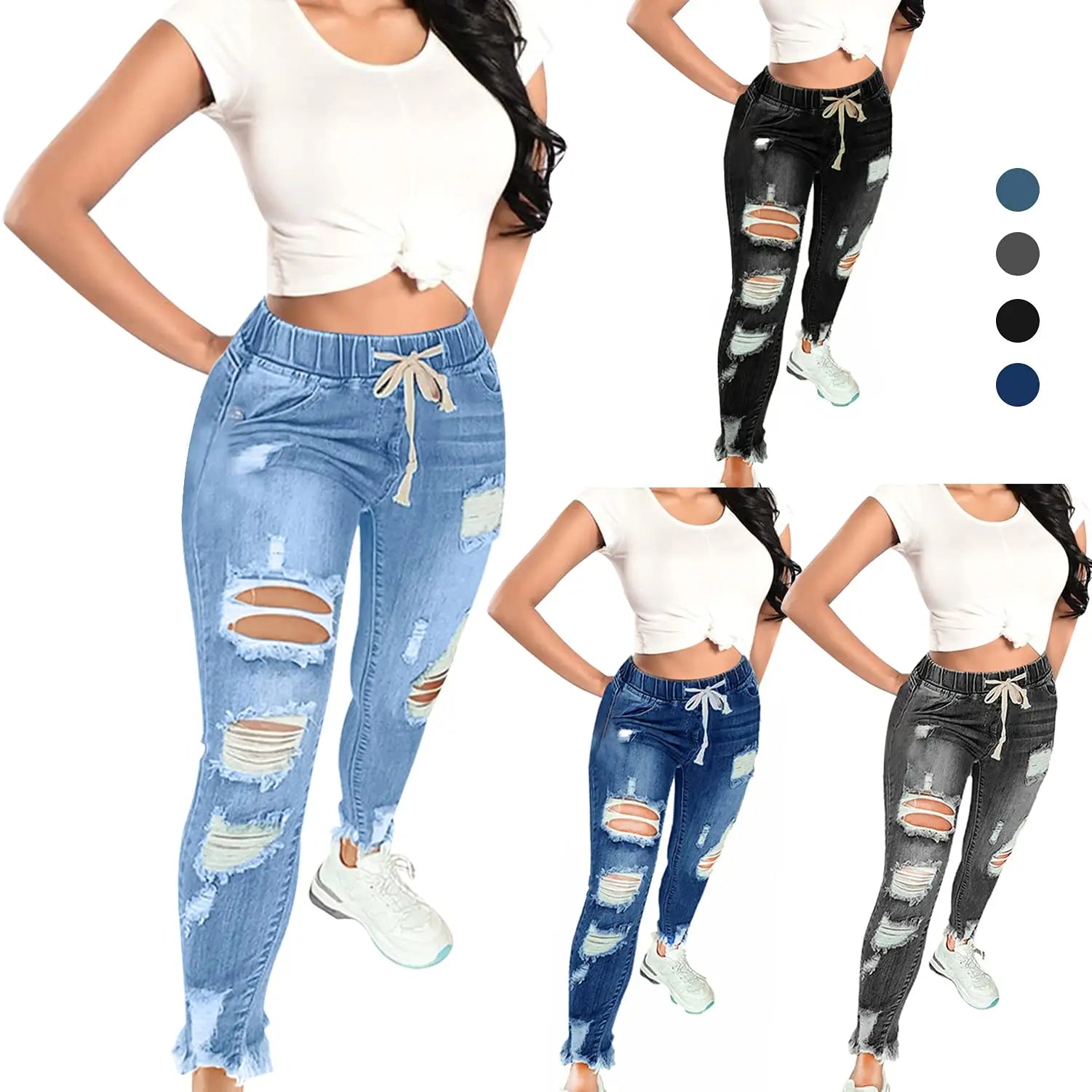Women's Stretchy Ripped Skinny Jeans High Wasted Boyfriend Distressed Denim Pants Leggings